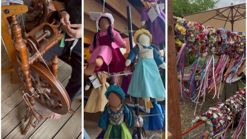 The marketplace is honestly really cool. Lots of Old World Crafts (my fav) and demonstrations. Def check out the glass blowers! The fibers and the ragdoll shops were my favorites.